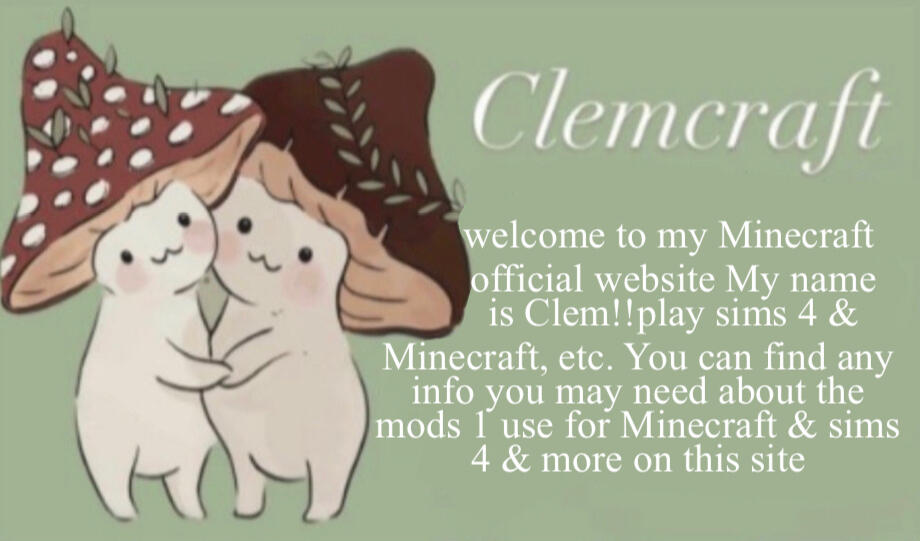 Helloo, my name is Clem! I started to play Minecraft in 2013 and since still addicted to this game!! I also started to play Sims 4 in 2015 and grew into the knowledge of mods! mods really enhance your gameplay and just adds a little spice & fun to play the game. you can find all info about the resource packs, Addons, mods, & websites i use on this site!! i also have a youtube Channel that i will post as frequently as i can on but, i won’t promise that i’ll be posting everyday. i hope you enjoy these mods because i sure do!!